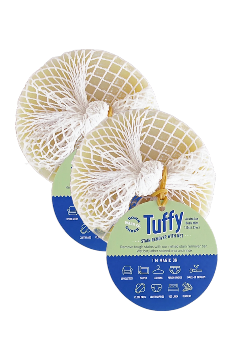 This ready-to-use netted soap with a water-proof tag has been known to eradiate red lipstick, dirt, grease, oil, grass-stains, red wine, blood and even ink!
