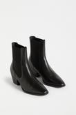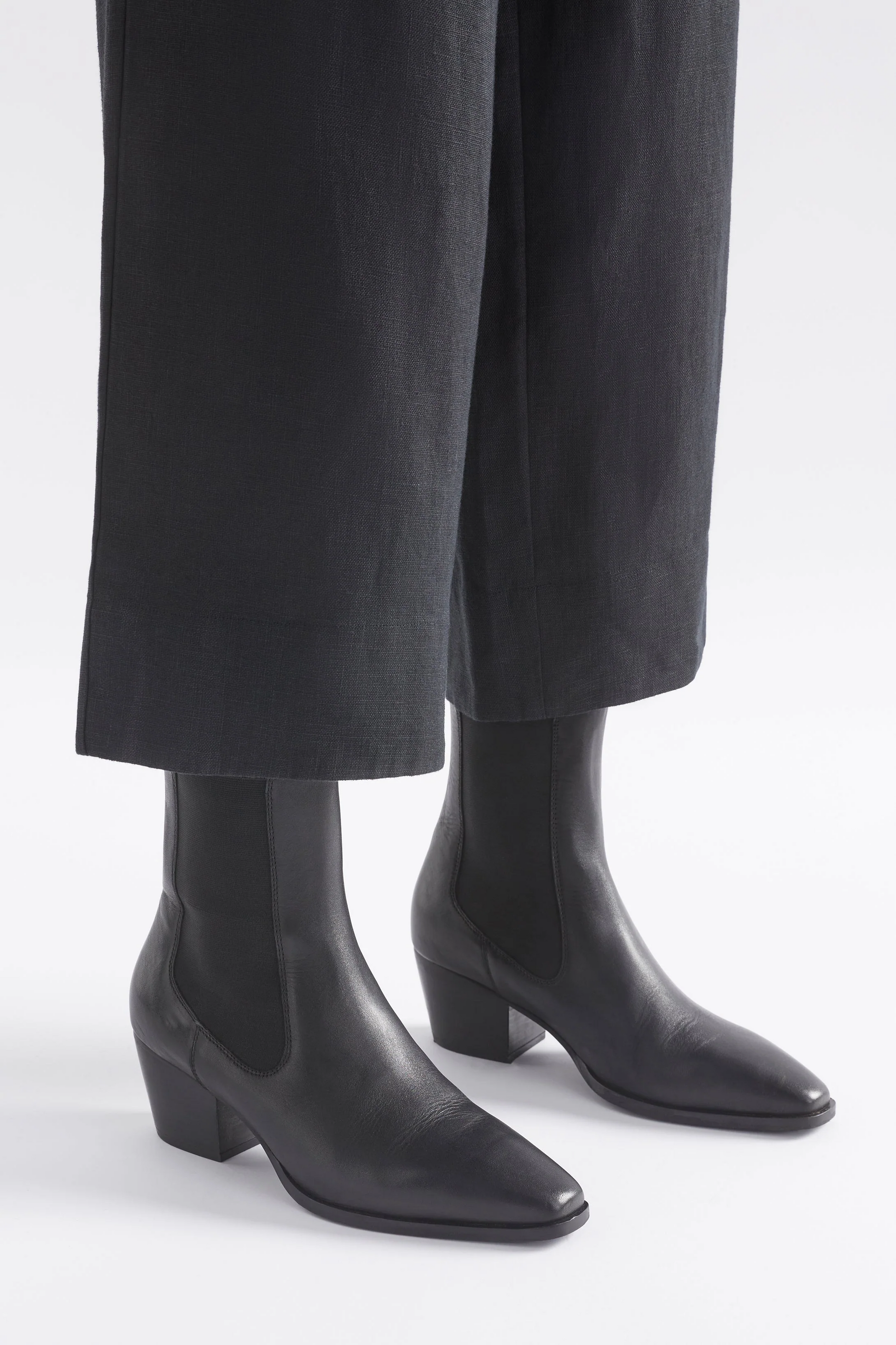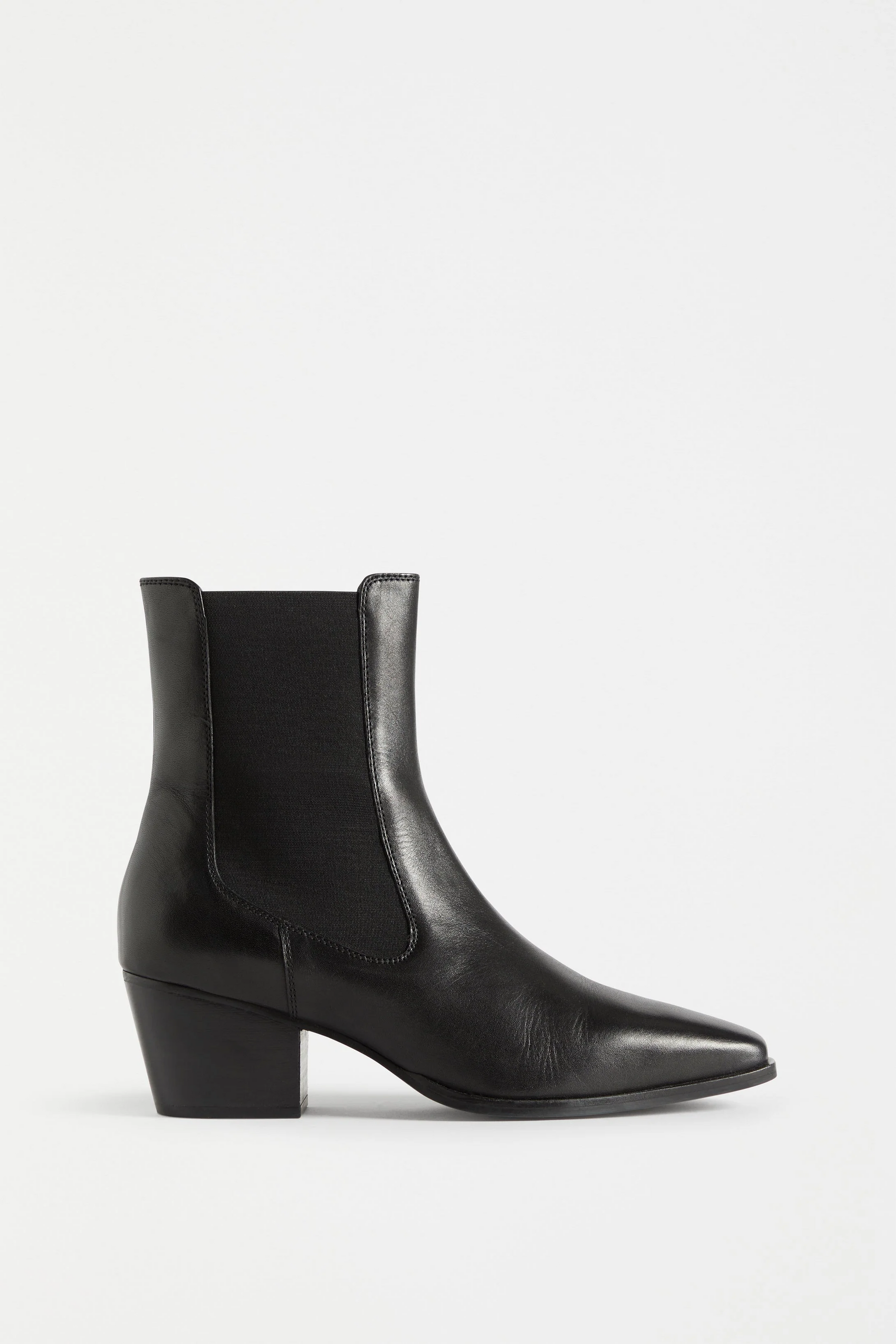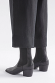 The Vastra Boot from Elk The Label is a classic heeled boot featuring a pointed square toe, exposed elasticated gusset for ease, and a mid-height angled heel.