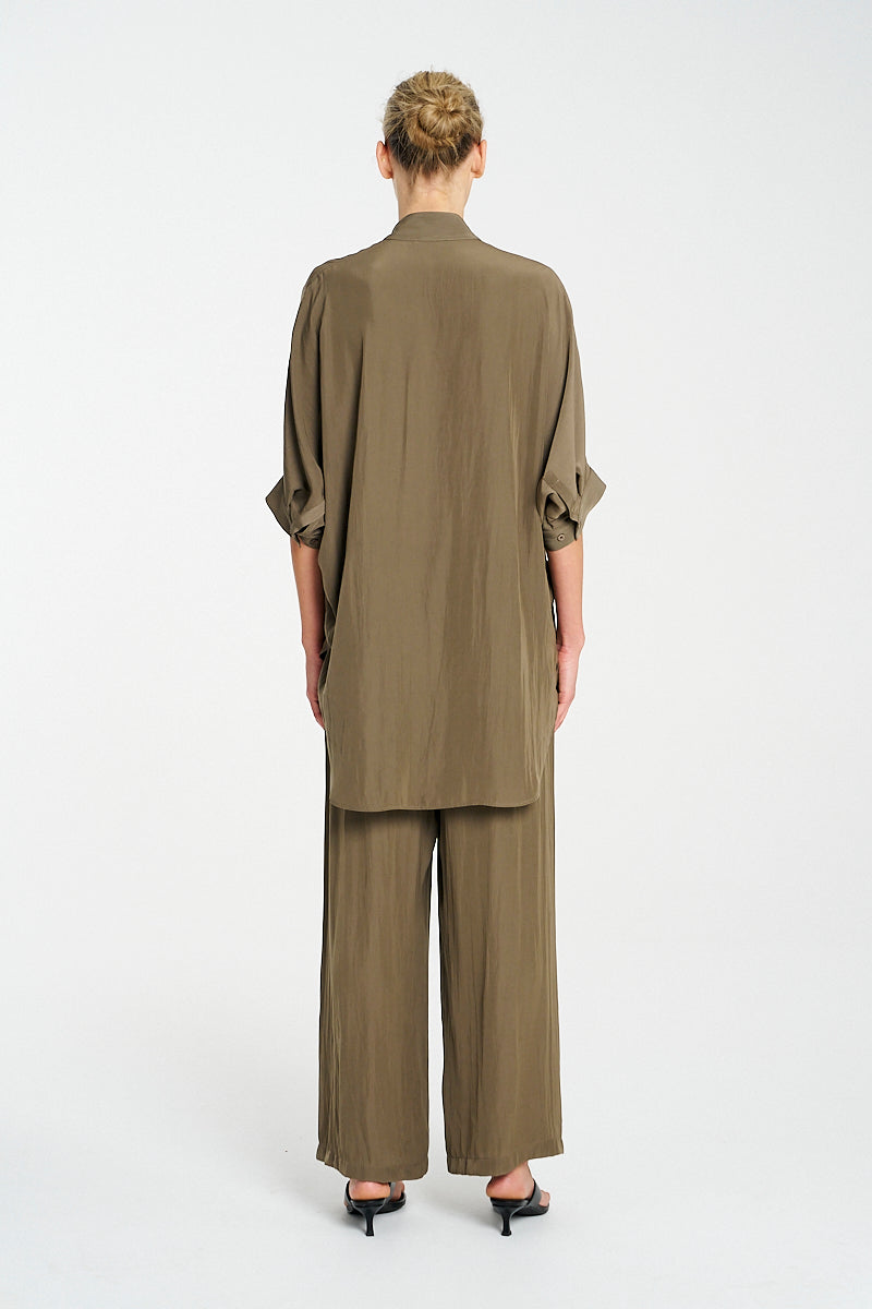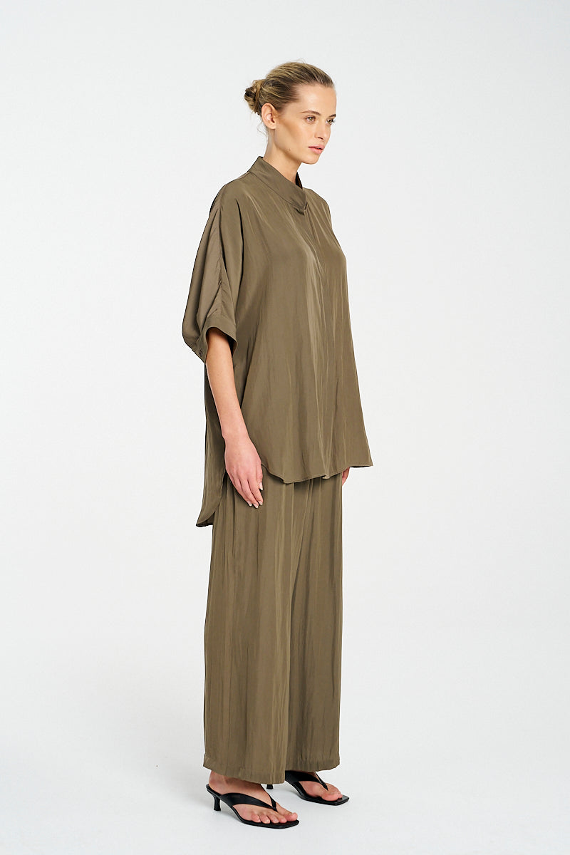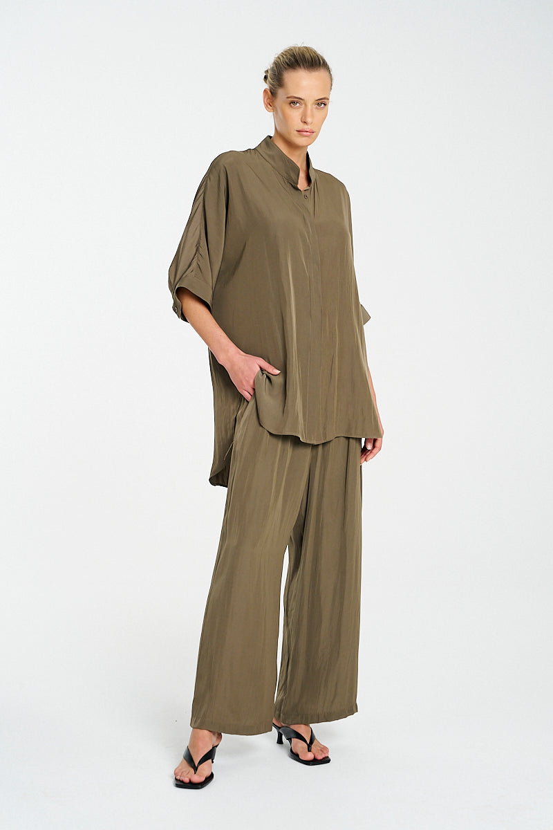 Crafted from Mela Purdie's classic Mache, a fine Denier technical weave with an airflow finish. The 'Villa Overshirt' from mela Purdie offers a relaxed fit silhouette and stand collar, this is a wardrobe essential.