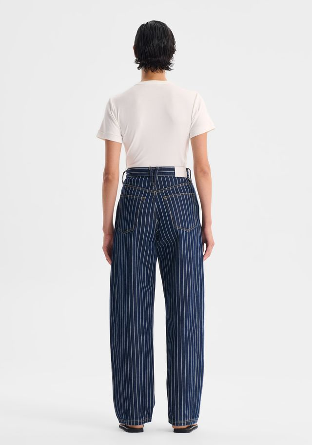 Crafted from pure cotton denim in a classic stripe, the Morrison Wyatt Jean offers a fresh take on everyday denim. Designed with a high-rise waist, traditional five-pocket styling, and a fly front, it features a unique side leg panel and a modern barrel-leg silhouette. Full-length for versatile wear, this piece blends structure with effortless cool.
